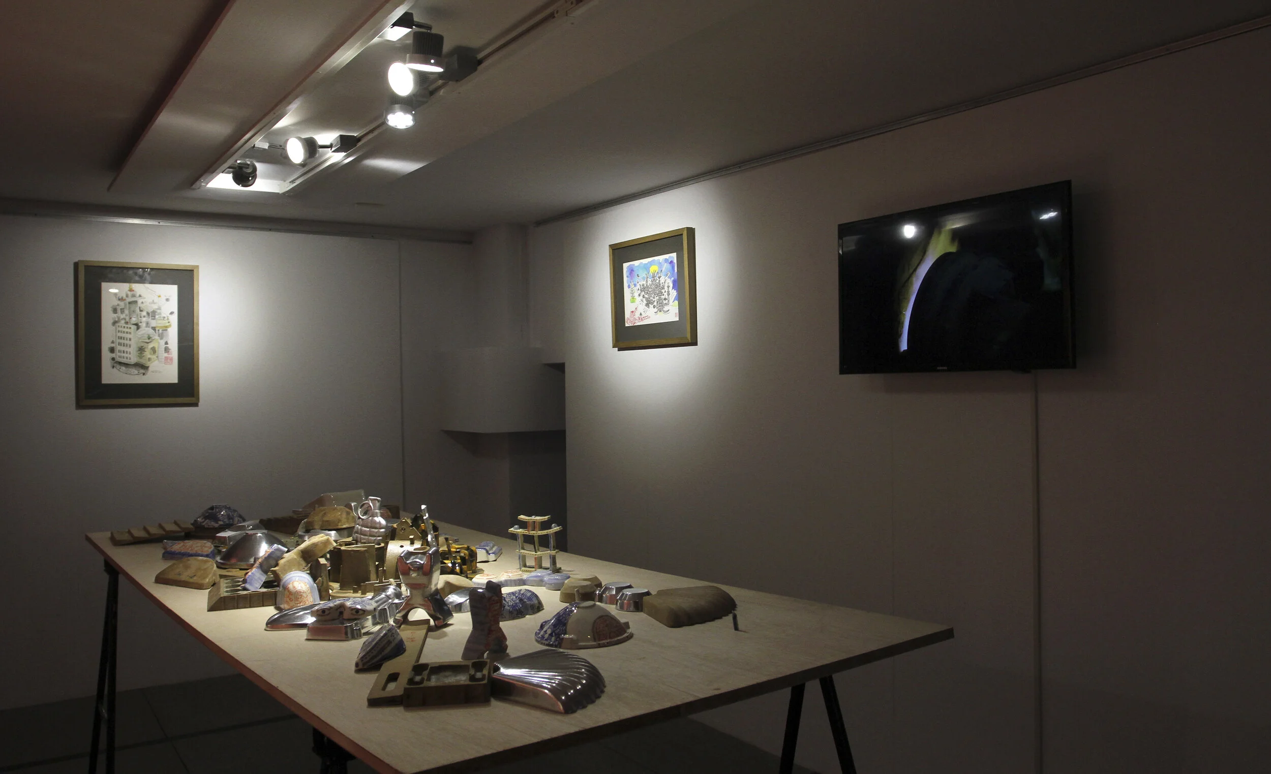 林俊賢《記憶測繪》透過機械中介將口述回憶視覺化,語言本為「身體系統」的重要功能,承載真實事件的人之記憶,卻成為模糊、扭曲、不可預期的色彩和線條視覺的「物」。林書楷與斐公慶共創之《模造島城》,是以書楷父親的木模「物」為題,開啟的共創系統,最後的完成「物」,是三個人與兩個城市之間的「交互關係」中所共同創造的「流動風景」,許素朱與蕭凱文,盛宜楠,孫佳興,朱宏國等四人共同創作之《 Crazy 01》,以理性的多視角線條演算法(Multi-view wire),將兩位名人肖像「愛因斯坦」與「瑪麗蓮夢露」轉換成為多視角交疊圖案「物」,觀者與物之間形成移動探索的「交互關係」,在正確尋找到正確的視角,觀看到完整的「物」。