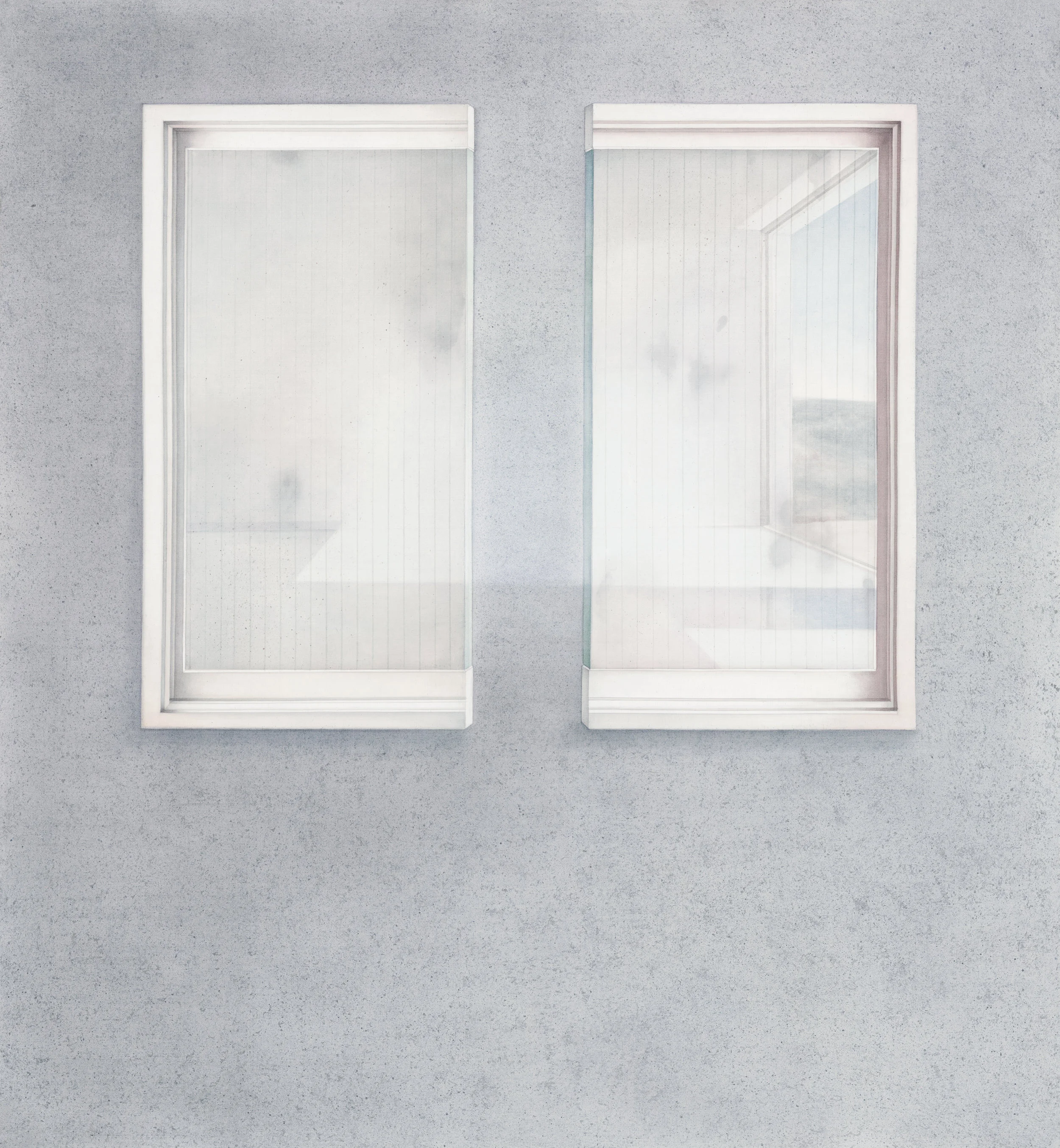 種種場面,同樣被置於由純淨無瑕的素色牆面、如窗似鏡的矩形框架,以及百無聊賴的日常氛圍共構而成的關係中,顯得平靜無事,然而情況卻非如此,事實上正開展著一種奇譎、驚異而超乎理性的劇情,彷彿某個「事件」的事發現場,真相有待揭露……。此外,牆壁、框架以及由明滅光影和粉性色調所形構的在場氛圍,看似處於一個失去時間、空間設定的狀態,畫面中所有物質與視覺元素的關係,被統御於由凝視與被凝視的對話邏輯之中。在此種邏輯關係中,世界的距離近在咫尺又遠在天邊,虛實交錯卻各自獨立,透過作者自身的模擬、想像與決定,最終形成一種的「能見」場景,藉以趨近「事件」的真實。
